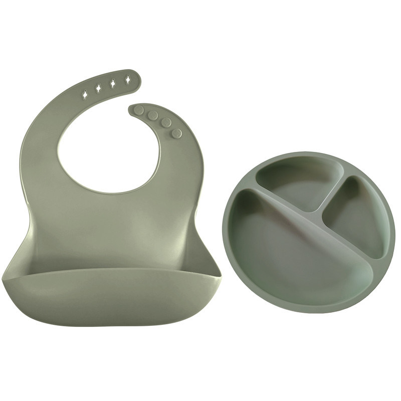 مريلة مخصصة قابلة للتعديل بسهولة لتنظيف مريلة من السيليكون مع مجموعة إطعام الطفل